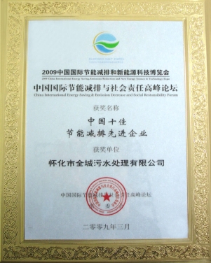 2009年3月在胡錦濤、溫家寶等中央領(lǐng)導(dǎo)出席的中國國際節(jié)能減排與新能源科技博覽會和高峰論壇上評為“中國十佳節(jié)能減排先進企業(yè)”。