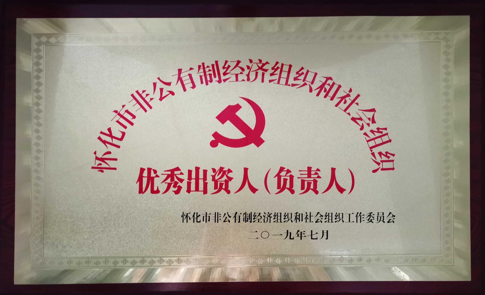 2019年7月被懷化市非公有制經(jīng)濟組織和社會組織工作委員會評為“懷化市非公有制經(jīng)濟組織和社會組織優(yōu)秀出資人(負責(zé)人)”